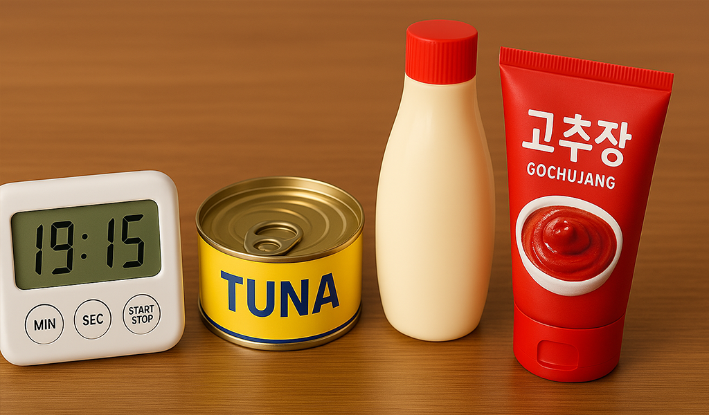 - 참치 마요 비빔밥: 통조림 참치, 마요네즈, 고추장만 있으면 OK.